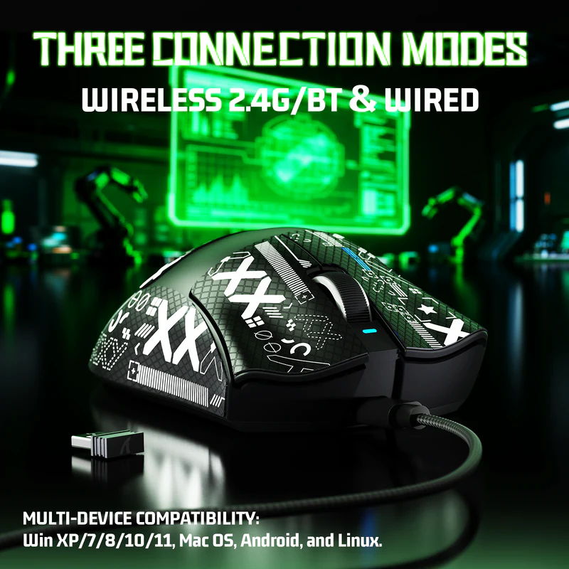 Tri-Mode Connectivity – Wired, 2.4GHz wireless, and Bluetooth