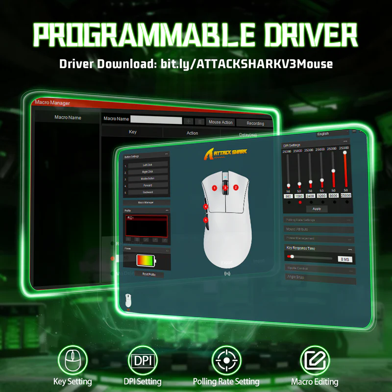 Programmable Buttons – Full customization via ATTACK SHARK software