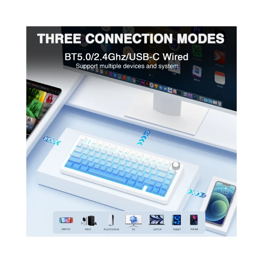 The AULA F75 Pro Gradient Blue is an excellent choice for users who want smooth typing, flexible wireless modes, and a sleek blue gradient design in a compact keyboard.