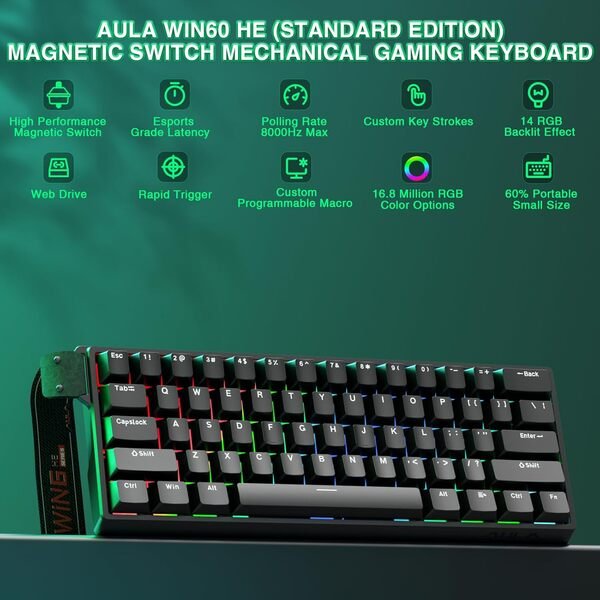 The WIN 60HE Magnetic Switch Wired Gaming Keyboard is perfect for gamers who need speed, customization, and pro-level control. With magnetic switches, extreme polling performance, and web-based tuning, it’s designed to give you an edge in every game.
