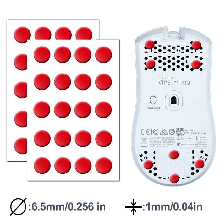 1× Set of 20 PTFE Glide Obsidian Control Mouse Skates (Red)