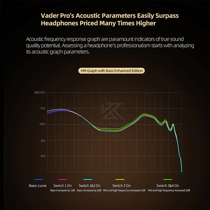 The KZ Vader Pro HM Graph Bass Enhanced Edition is a high-end 6-driver in-ear monitor designed for audiophiles and professionals who want powerful bass without sacrificing balance. Featuring three dynamic drivers per side (bass, mids, treble), each tuned for a dedicated frequency range, it delivers impactful low-end with clear vocals and detailed highs.