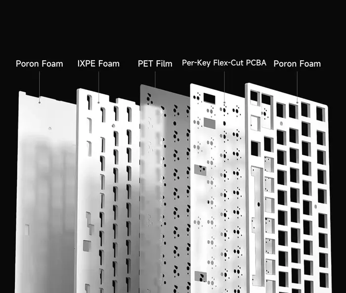 • 1.2mm Flex-Cut PCB: Quieter, softer typing with stable backlighting.
