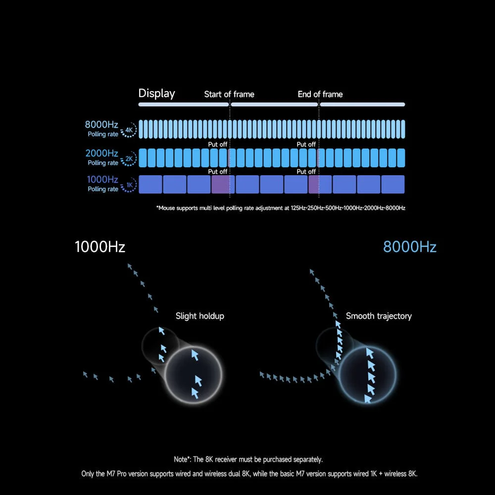 ⚡ Ready for 8K Speed This mouse is built for top performance. It supports an 8000Hz wireless speed. This means you can get a 0.125ms response time. You will have zero lag. (Note: You must buy an 8K receiver separately to get this speed.)