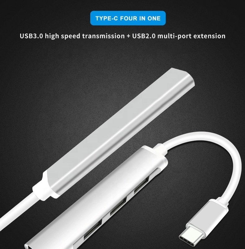 Running out of USB ports on your MacBook, laptop, or phone? This ultra-slim USB-C Hub is the perfect solution. It transforms a single USB-C port into four full-size USB-A ports, allowing you to connect all your essential devices simultaneously.