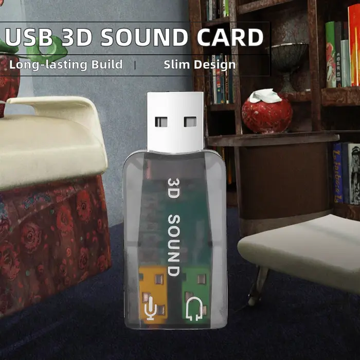 Experience crystal-clear 3D audio anywhere with this external USB sound card.